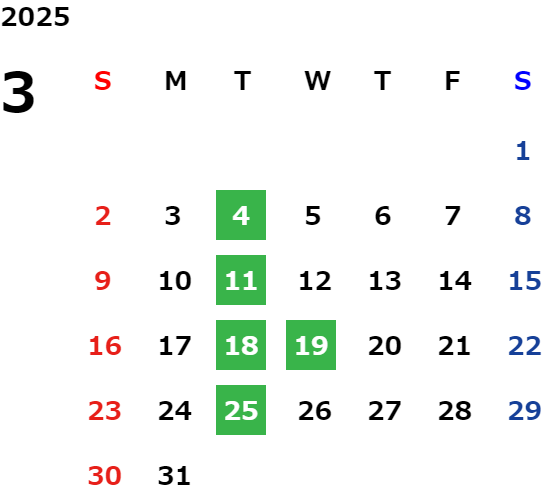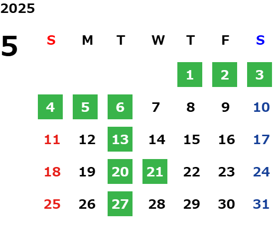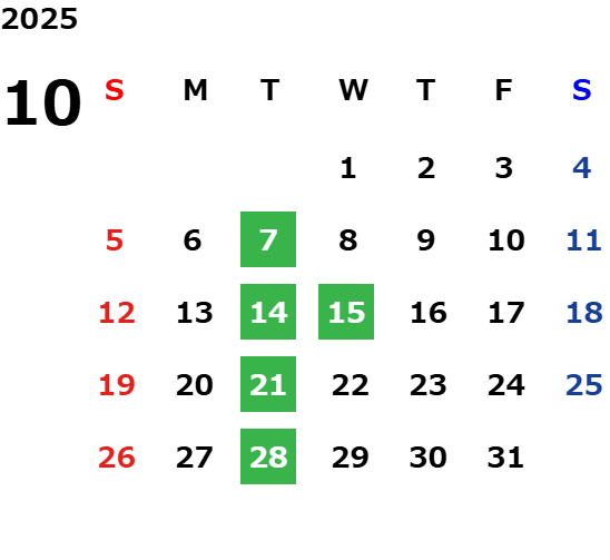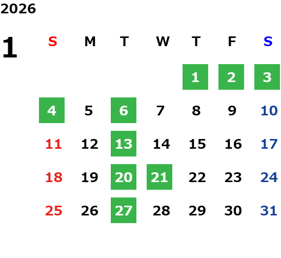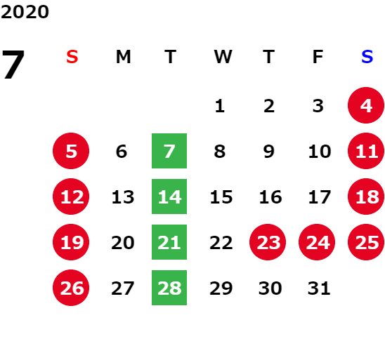 店舗定休日(店舗により定休日が異なります。各店舗ページのカレンダーにてご確認ください。)