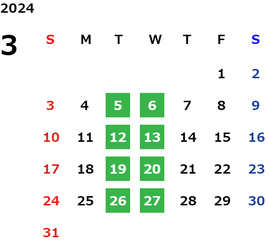 営業日カレンダー