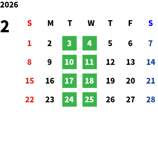 店舗定休日(店舗により定休日が異なります。各店舗ページのカレンダーにてご確認ください。)