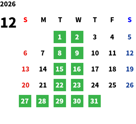 店舗定休日(店舗により定休日が異なります。各店舗ページのカレンダーにてご確認ください。)
