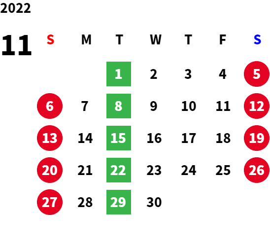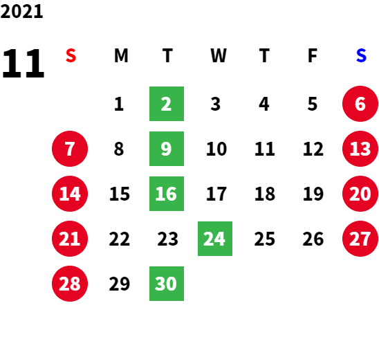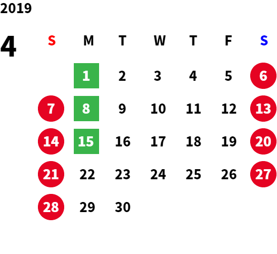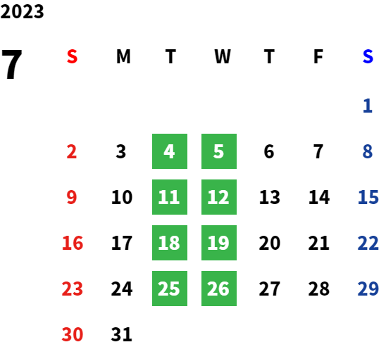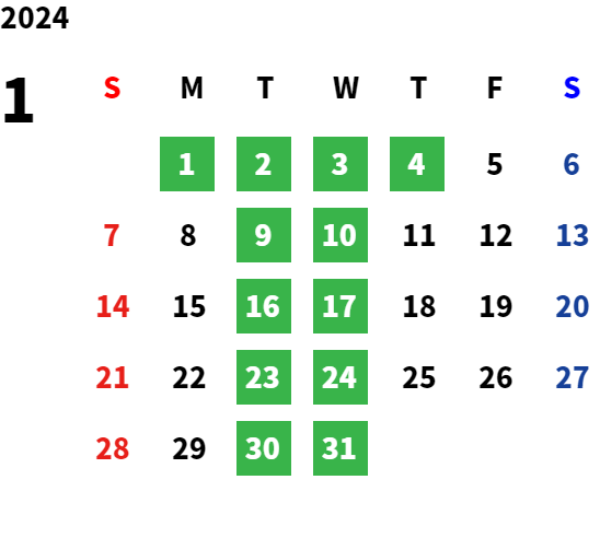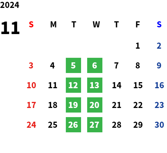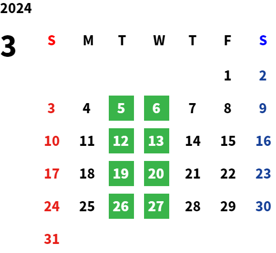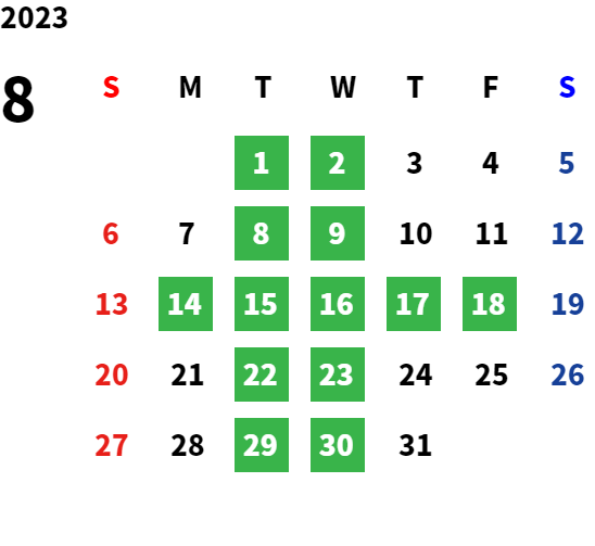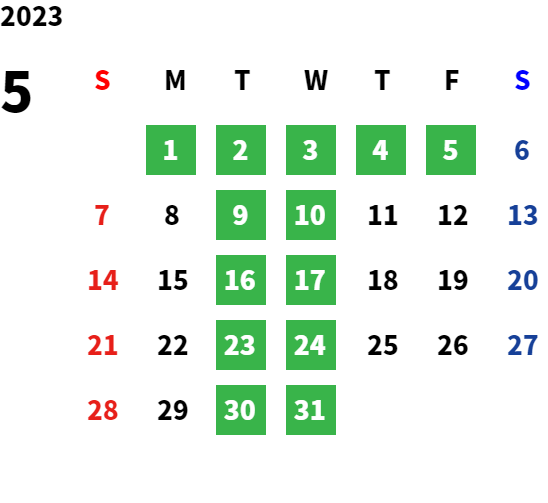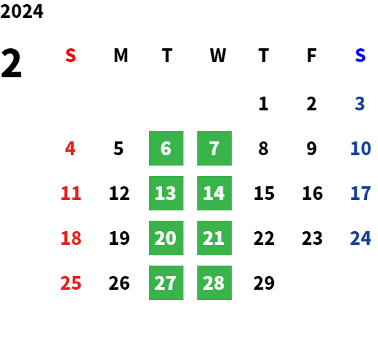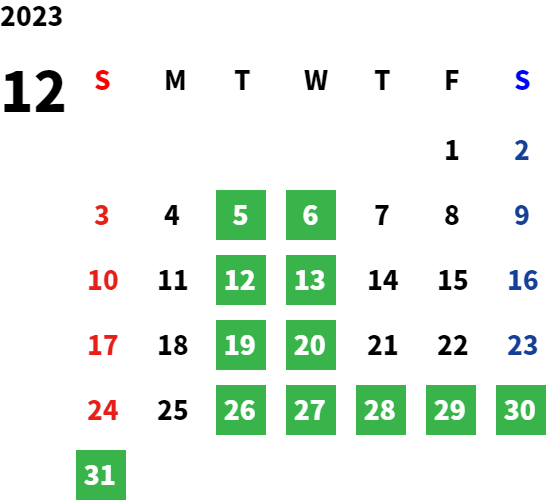 営業日カレンダー