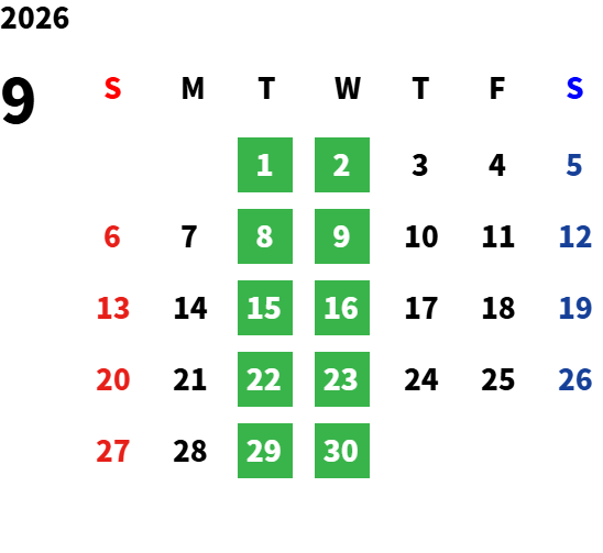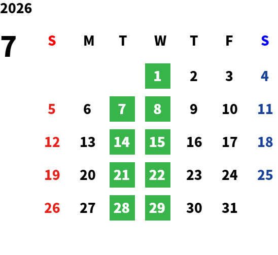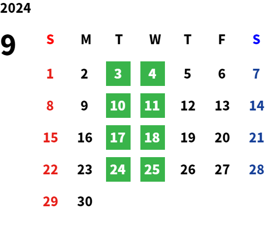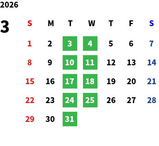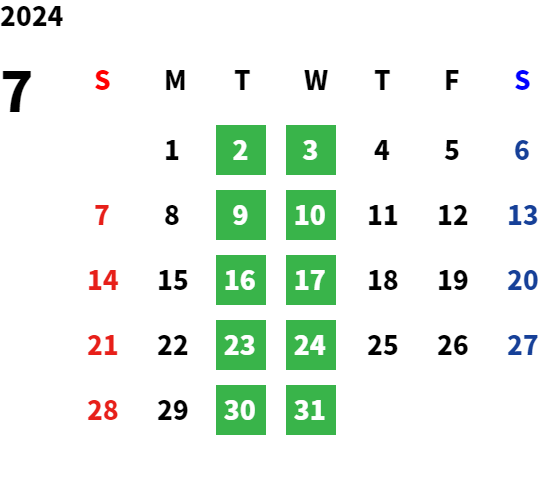 毎週火曜日・水曜日が定休日です。