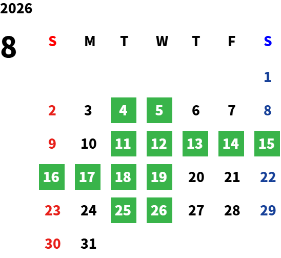 店舗定休日(店舗により定休日が異なります。各店舗ページのカレンダーにてご確認ください。)